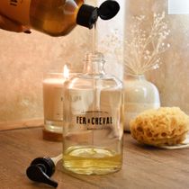 Fer à Cheval glasflaska med pump Artikelnummer: FCSX5000138 Fer à Cheval signaturglasflaska med pump Ekologisk, hållbar och oändligt påfyllningsbar - denna 500 ml glasflaska är ett bra alternativ till plastflaskor! Fer à Chevals glasflaska är dekorerad med ett svart silkscreentryck av deras eleganta signatur som kommer att ge en dekorativ touch till ditt badrum eller kök. Påfyllningsbar med alla våra 1L doftande flytande tvålar eller Flytande Marseilletvål med olivolja 1L. 500 ml glas Beständigt silkscreentryck 100% glas, plastpump som skruvas loss för enkel rengöring. Beständigt silkscreentryck Skruva loss pumpen och fyll på med din favorit av Fer à Chevals flytande tvålar!