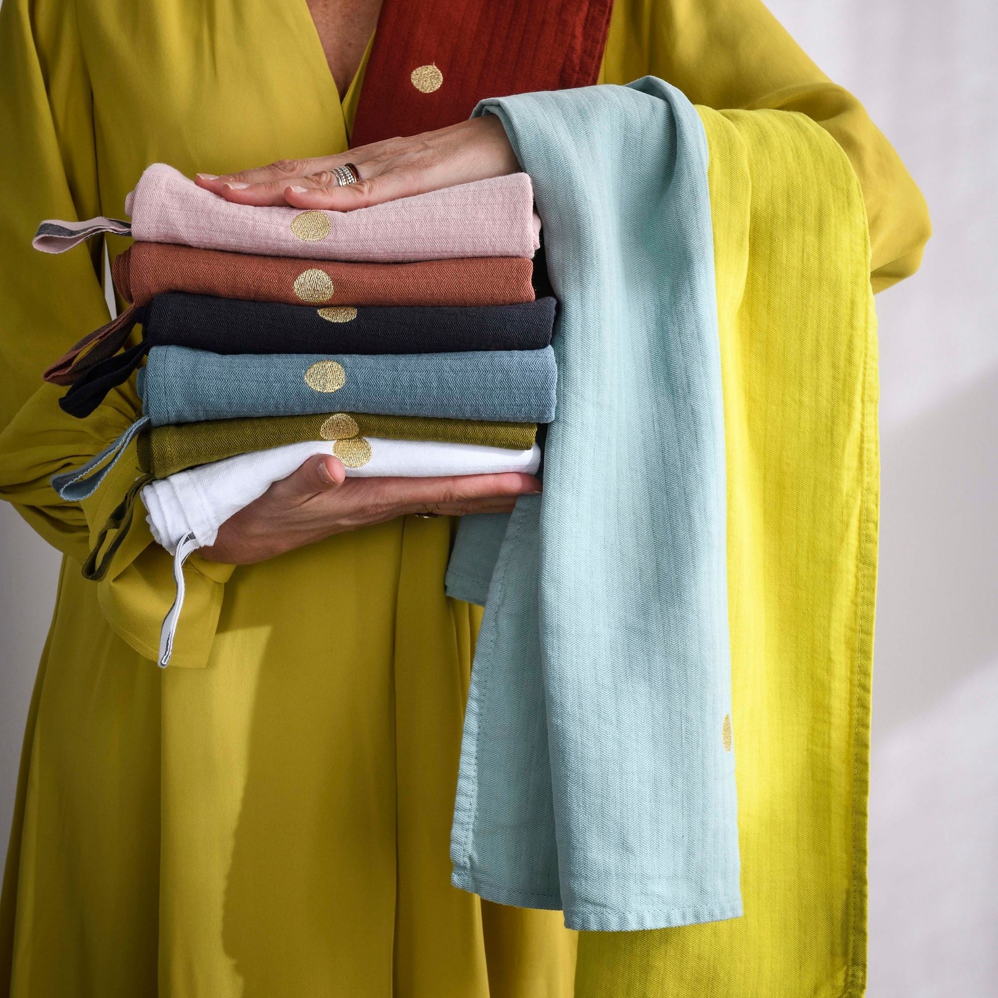 Kökshandduk med vackert fiskbensmönster och många färger för att mixa och matcha.