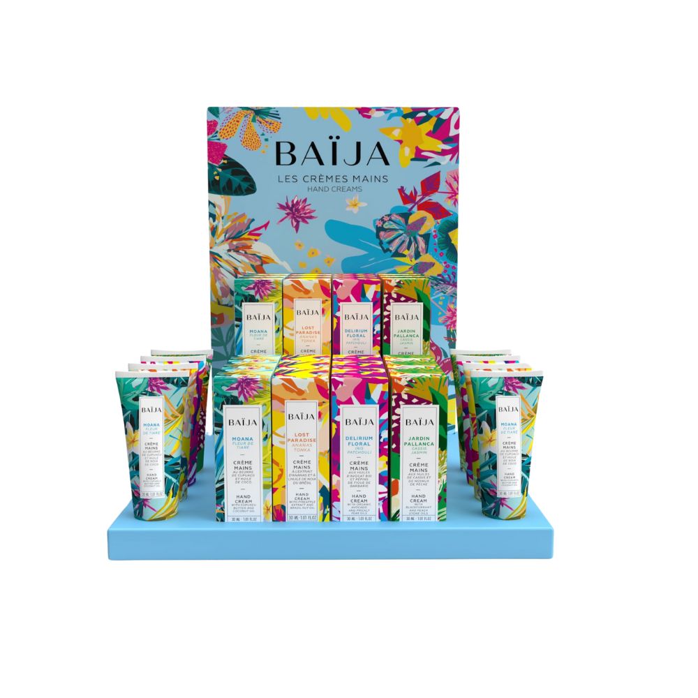 Lanseringskitt Handcreme Förpackningen innehåller 6 st Hand Cream 30ml Moana 6 st Hand Cream 30ml Lost Paradise 6 st Hand Cream 30ml Jardin Pallanca 6 st Hand Cream 30ml Ile d'azur 6 st Hand Cream 30ml Delirium Floral 6 st Hand Cream 30ml Minuit Chéri 1 st Hand Cream 30ml Minuit Chéri TEST 1 st Hand Cream Jardin Pallanca 30ml TEST 1 st Hand Cream Lost Paradise 30ml TEST 1 st Hand Cream Ile d'azur 30ml TEST 1 st Hand Cream Delirium Floral 30ml TEST 1 st Hand Cream Moana 30ml TEST 1 st Display Handcreme Artikelnummer: BAKTCM Komplett lanseringskitt med handcreme; tester & display ingår Vid köp av vårt lanseringskitt för handcreme så bjuder vi på displayen samt testers (värde ca 425kr). Displayen kommer med 6st handcremer av varje doft, Moana, Lost Paradise, Minuit Chéri, Delirium Floral, Île d'azur & Jardin Pallanca (totalt 36st handcreme). Ni kan sedan fylla på displayen efterhand!